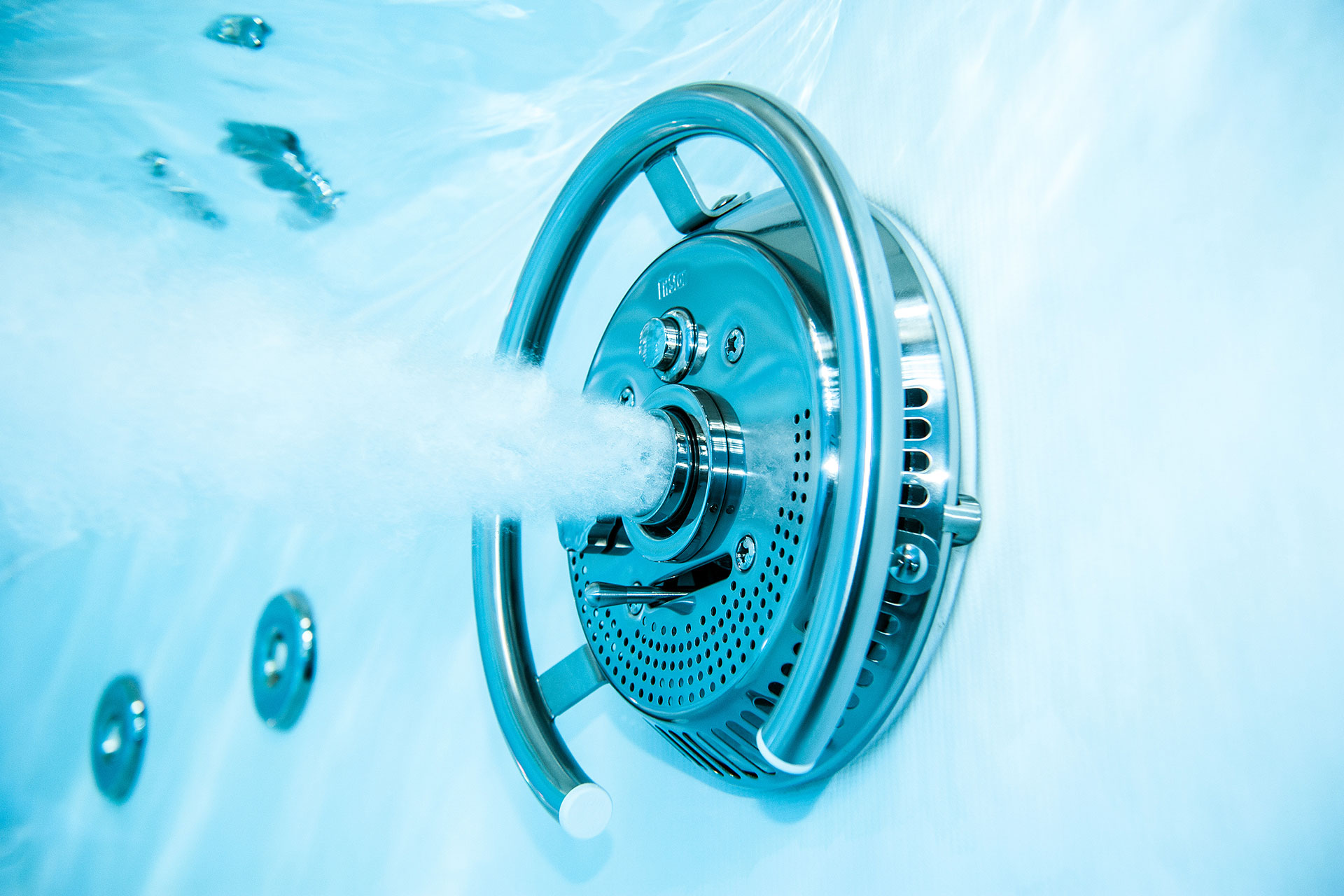 Masowanie ciała bąbelkami powietrza możliwe jest nie tylko w wannach z hydromasażem, ale również w basenach. W niektórych modelach schodów CAPENA można zamontować dysze, przez które jest tłoczone powietrze.